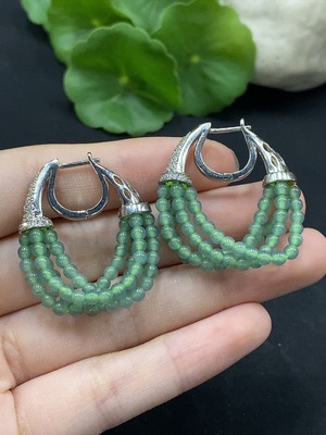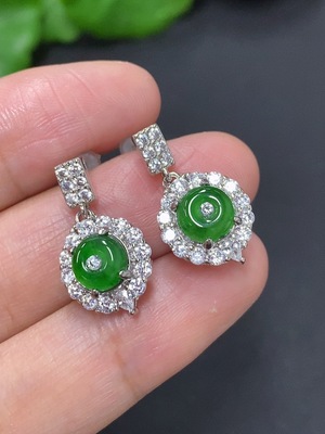 F37424419 Jadeite cabochon inlaid earrings non-gold inlaid