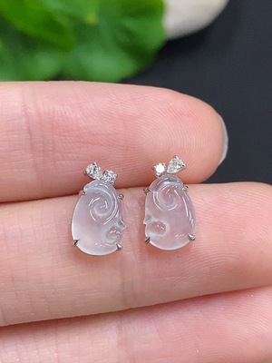 F30512605 Jadeite Baby Buddha Inlaid Earrings 18K Gold Total Product Weight Approximately 1.9g