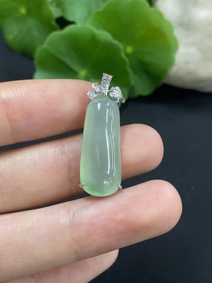 F38523486 Jadeite Cabochon Pendant with 18K Gold and Diamond Accents, Total Weight Approximately 2g