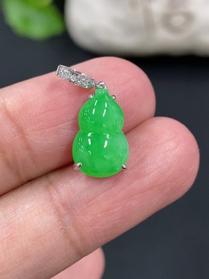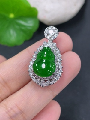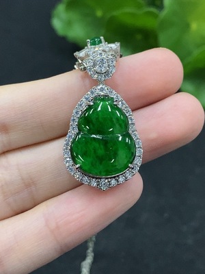 F38537769 Jadeite Auspicious Gourd Pendant with 18K Gold and Diamond Accents, Total Weight Approximately 3.28g