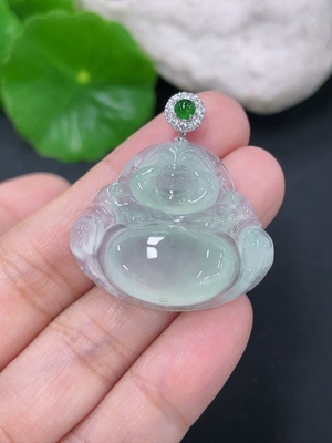 F39582937 Jadeite Buddha Pendant, Total Weight Approx. 6.53g, 18K Gold Clasp, Diamond Accents