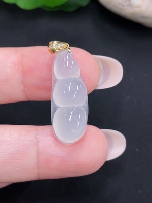 F32800655 Jadeite Gourd Pendant with 18k Gold Setting, Total Weight Approx. 3.39g, Accented with Diamonds