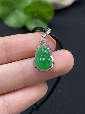 F35191086 Jadeite Gourd Inlaid Pendant, 18K Gold Pendant, Non-Gold Chain, Total Weight Approximately 1.49g Excluding Chain, Set with Diamonds