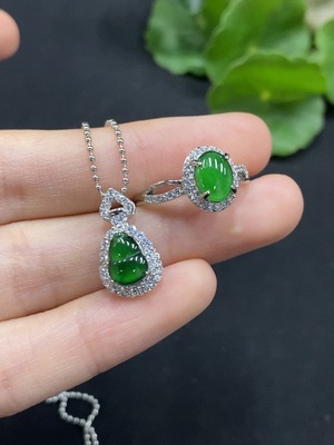 F36334228 Jadeite Gourd Inlaid Pendant / Adjustable Ring Non-Gold Inlaid