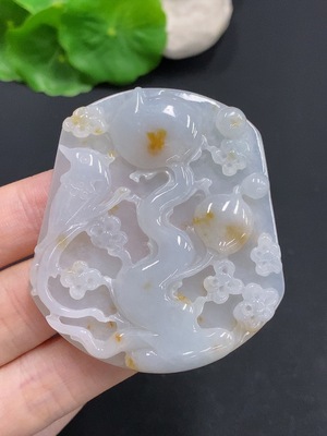 F32756918 Jadeite Magpie on the Plum Branch Pendant