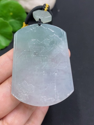 F35077889 Jadeite Landscape Pendant with Master's Collection Certificate and Signature, Total Weight Approx. 50.3g (Including Rope Weight)