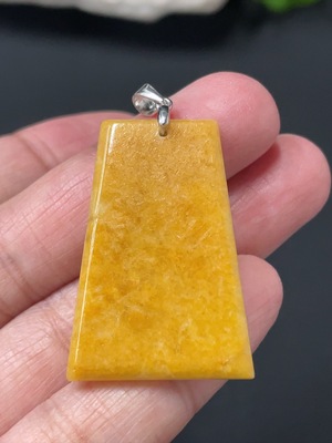 F34056749 Jadeite Safety Buckle Pendant, yellow part color origin undetermined, total weight approximately 49g