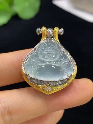 F34948735 Jadeite Buddha Pendant with 18K Gold and Diamond Accents, Total Weight Approximately 8.53g