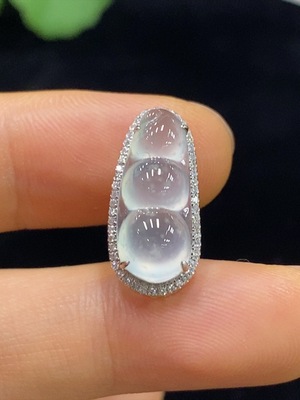 F33893921 Jadeite Auspicious Bean Pendant with 18K Gold Setting, Total Weight Approx. 2.6g (Accented with Diamonds)