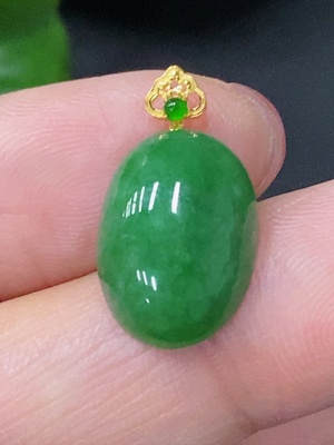 F34975339 Jadeite Bean Pendant Set in 18k Gold with Diamond Accents, Total Weight Approximately 1.74g