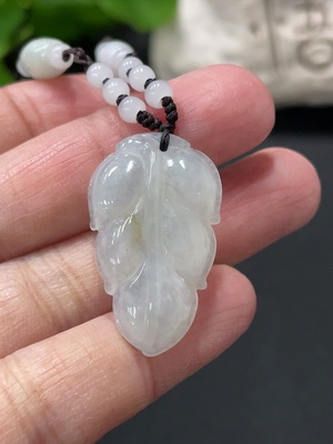 F37347831 Jadeite Leaf Pendant Total Weight Approx. 5.9g With Non-Grade A Beads