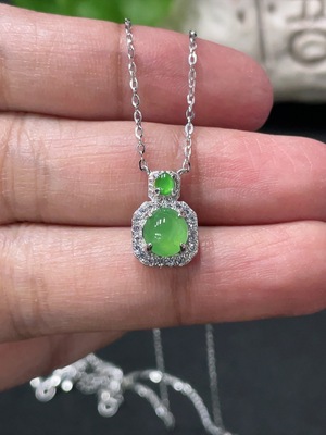 F34977872 Jadeite Inlaid Cabochon Pendant Non-Gold Total Weight Approx. 2.56g Including Chain