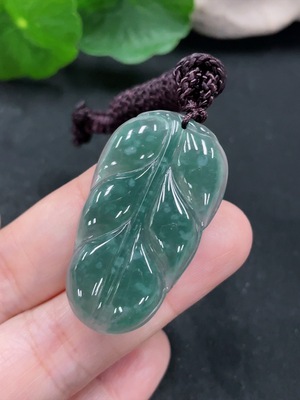 F36299944 Jadeite Leaf Pendant Total Weight Approx. 7.6g (Including Rope Weight)