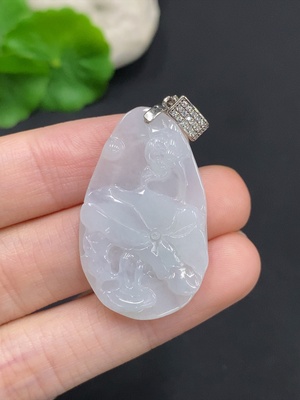 F35127834 Jadeite flower plaque pendant, total weight approximately 5.5g