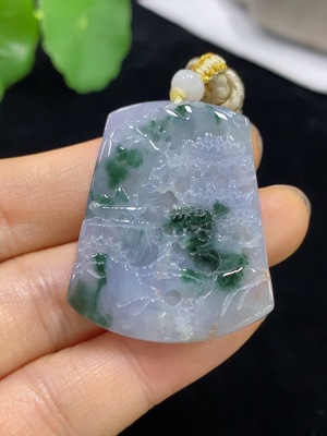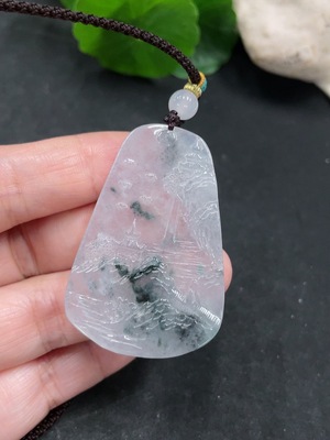 F36222709 Jadeite Landscape Pendant with a total weight of approximately 15.3g (including rope weight)