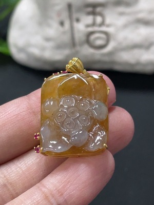 F33864625 Jadeite Blessing Melon Pendant with 18K Gold, Total Weight Approx. 3.7g