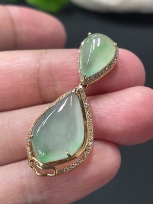 F33908296 Jadeite Teardrop Inlay Pendant 18k Gold Inlaid with Diamonds Total Weight Approx. 3.58g