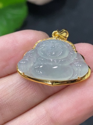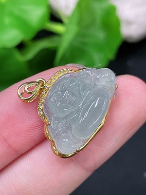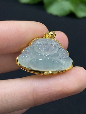 F32802643 Jadeite Buddha Pendant with 18k Gold Mounting, Total Weight Approximately 2.85g