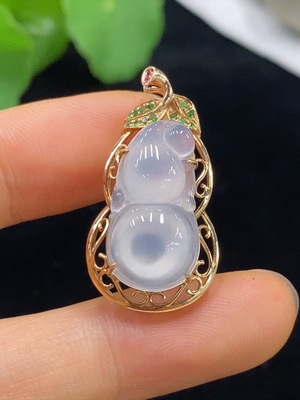 F36209875 Jadeite Gourd Inlaid Pendant 18k Total Weight Approx. 4.15g