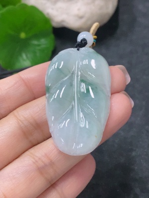 F34042745 Jadeite Pendant Leaf Total Weight Approx. 12.25g Including Rope With Non-Grade A Beads