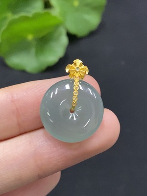 F32769009 JadeitePíng'ān Kòu Pendant with 18K Gold Clasp, Total Weight Approximately 6.86g