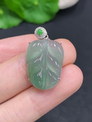 F32807820 Jadeite Leaf Pendant 18K Gold Total Weight Approx. 3.2g