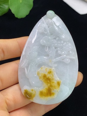 F28201351 Jadeite Magpie on the Plum Blossom Pendant