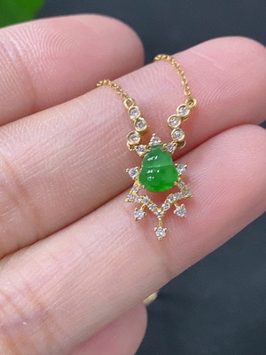 F32711662 Jadeite Pendant with 18K Gold and Diamond Accents, Total Weight Approx. 2.25g (Including Chain)