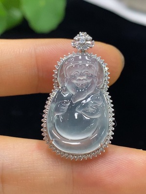 F35114196 Jadeite Maitreya Inlaid Pendant 18k with Diamond, Total Weight Approx. 4.6g