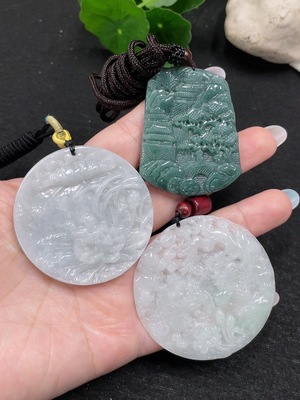 F32768956 JadeitePendant, Peace Buckle, Landscape Plaque