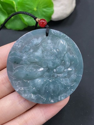 F23563347 Jadeite Pendant 'Flowers Bloom and Wealth Flourishes' with Non-Grade A Beads, Total Weight 28.502g