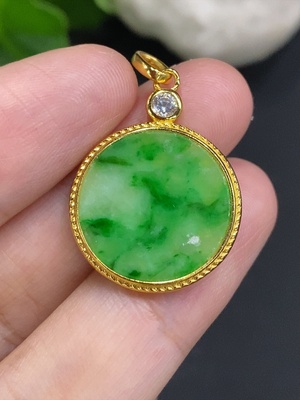 F36339449 Jadeite Pendant 18k Gold Set with Diamonds Total Weight Approx. 0.47g