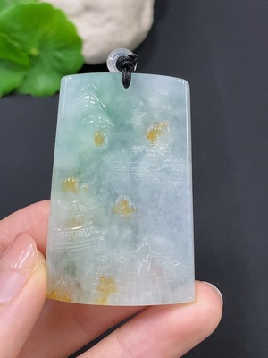 F28271126 Jadeite Landscape Pendant Total Weight Approx. 28.4g (Including Rope)