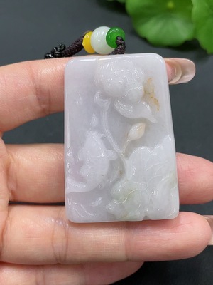 F20260980 Jadeite Lotus Leaf Fish Pendant with Non-Grade A Stones, Total Weight 40.313g
