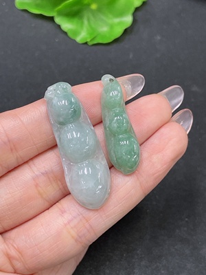 F35080270 Jadeite Pendant + Earrings Leaf Lucky Bean Non-A Bead Non-Gold Inlaid