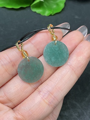 F35126076 Jadeite Donut Pendant with Earrings Sell as a Lot Non-Gold Inlaid