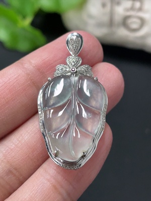F35089188 Jadeite Pendant Lotus Leaf Total Weight Including Cord 18.14g
