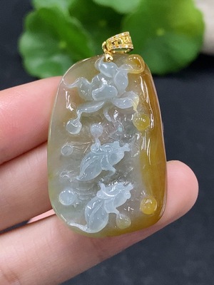 F35143143 Jadeite Auspicious Life Pendant Total weight about 9g 18k gold inlaid with diamonds