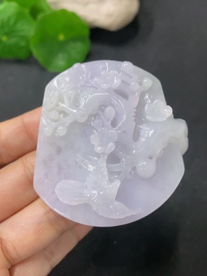 F35140098 Jadeite Pendant with Magpies on Plum Blossoms, Total Weight Approx. 51.03g