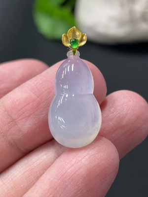 F36253839 Jadeite Gourd Pendant Total Weight Approx. 2.6g 18K Gold Clasp