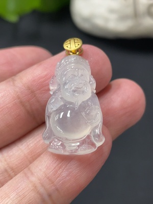 F32769142 Jadeite God of Wealth Pendant with 18K Gold Clasp, Total Weight Approx. 3.55g