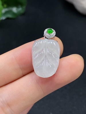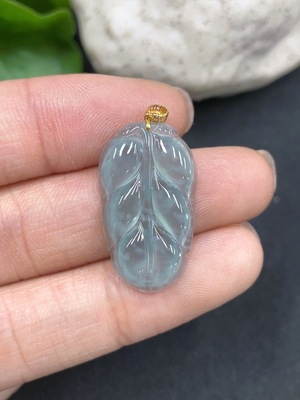 F16732198 Jadeite Leaf Pendant with 18K Gold Bail, Total Weight 1.632g