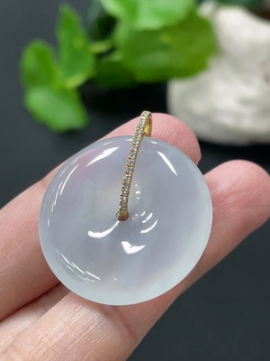 F35108570 Jadeite safety buckle pendant, total weight about 8.97g, 18k gold buckle head with diamond accents