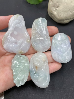 F34025818 Jadeite Pendants Sell as a Lot with Non-A Grade Stones and Non-Gold