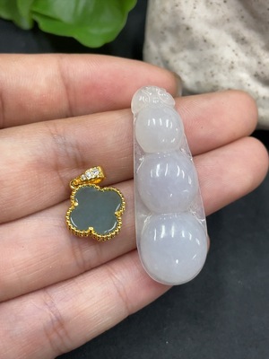 F15666574 Jadeite Bean/Clover Pendant Non-Gold Inlaid Sold in Bulk