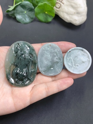 F36209714 Jadeite Cabochon Inlaid Pendant/Ruyi Pendant Sell as a Lot Non-Gold