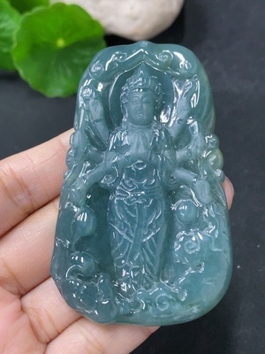 F33916725 Jadeite Thousand-Hand Guanyin Pendant with a total product weight of approximately 42.18g