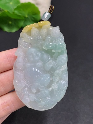 F35107600 Jadeite Five Sons Achieve Success Pendant