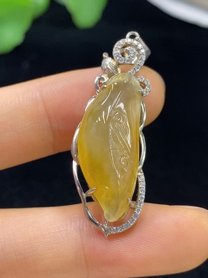 F35136971 Jadeite Auspicious Yearly Abundance Inlaid Pendant Non-Gold Total Weight Approx. 4.54g