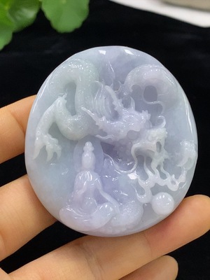 F31643138 Jadeite Dragon-Guarding Guanyin Pendant
